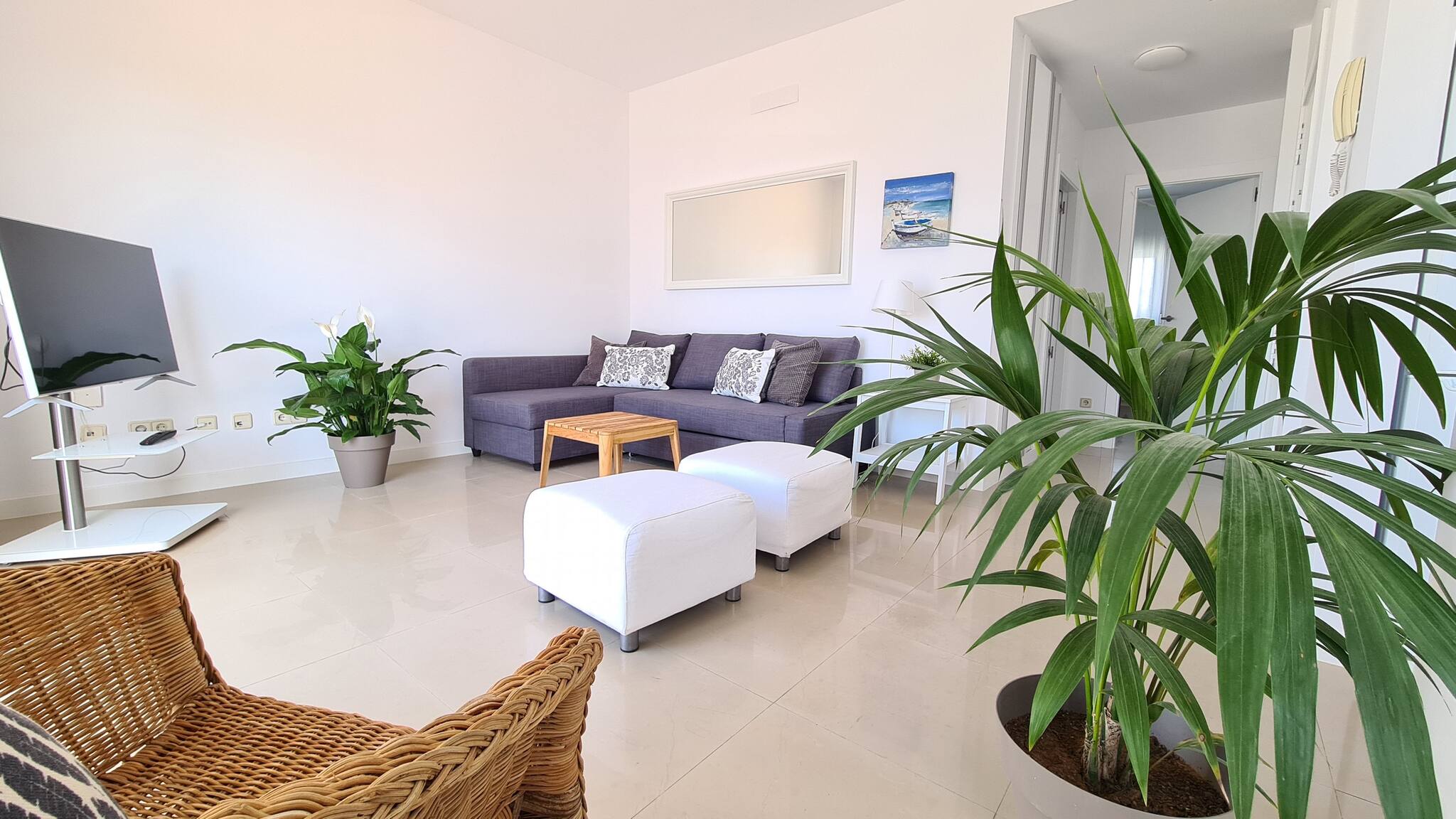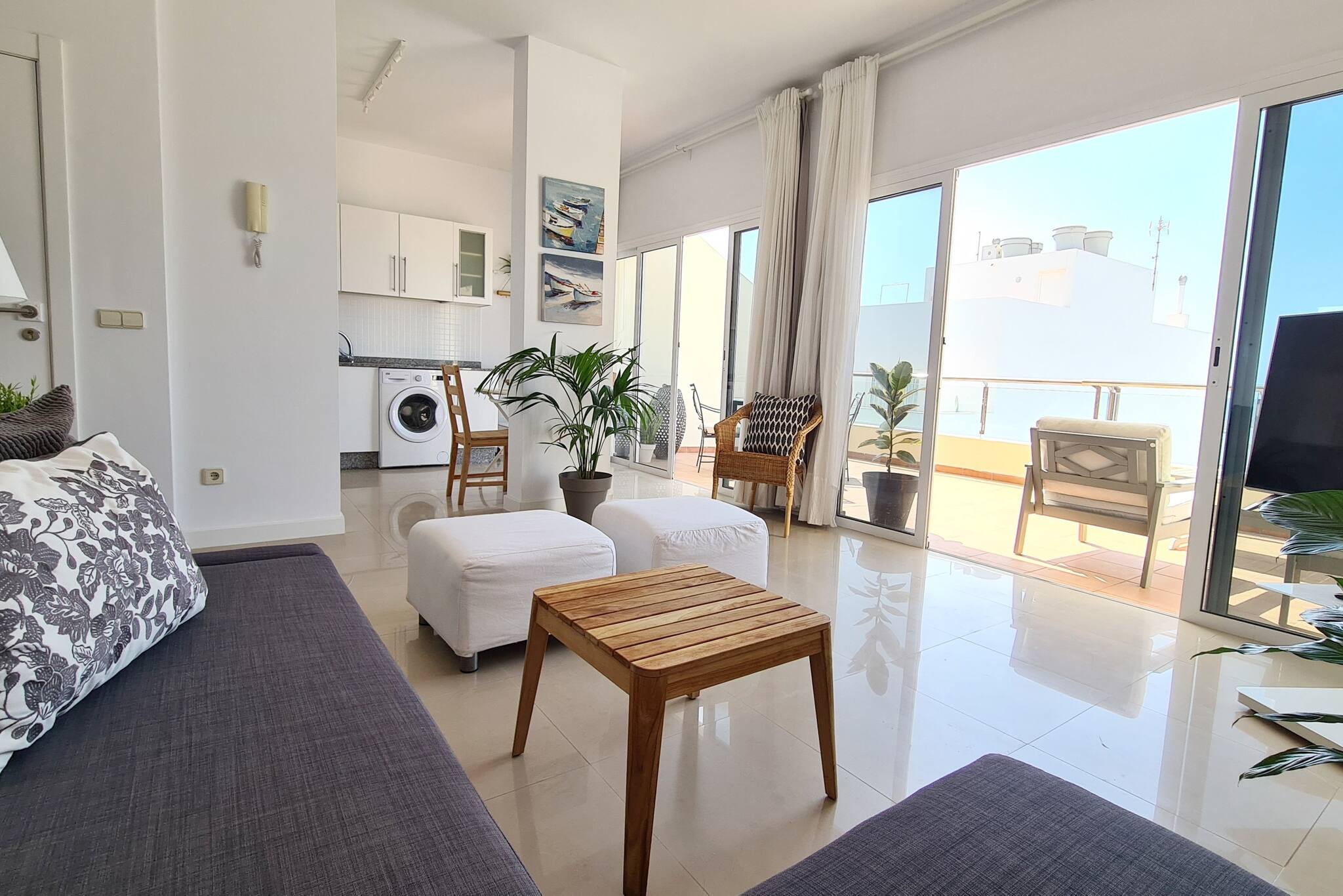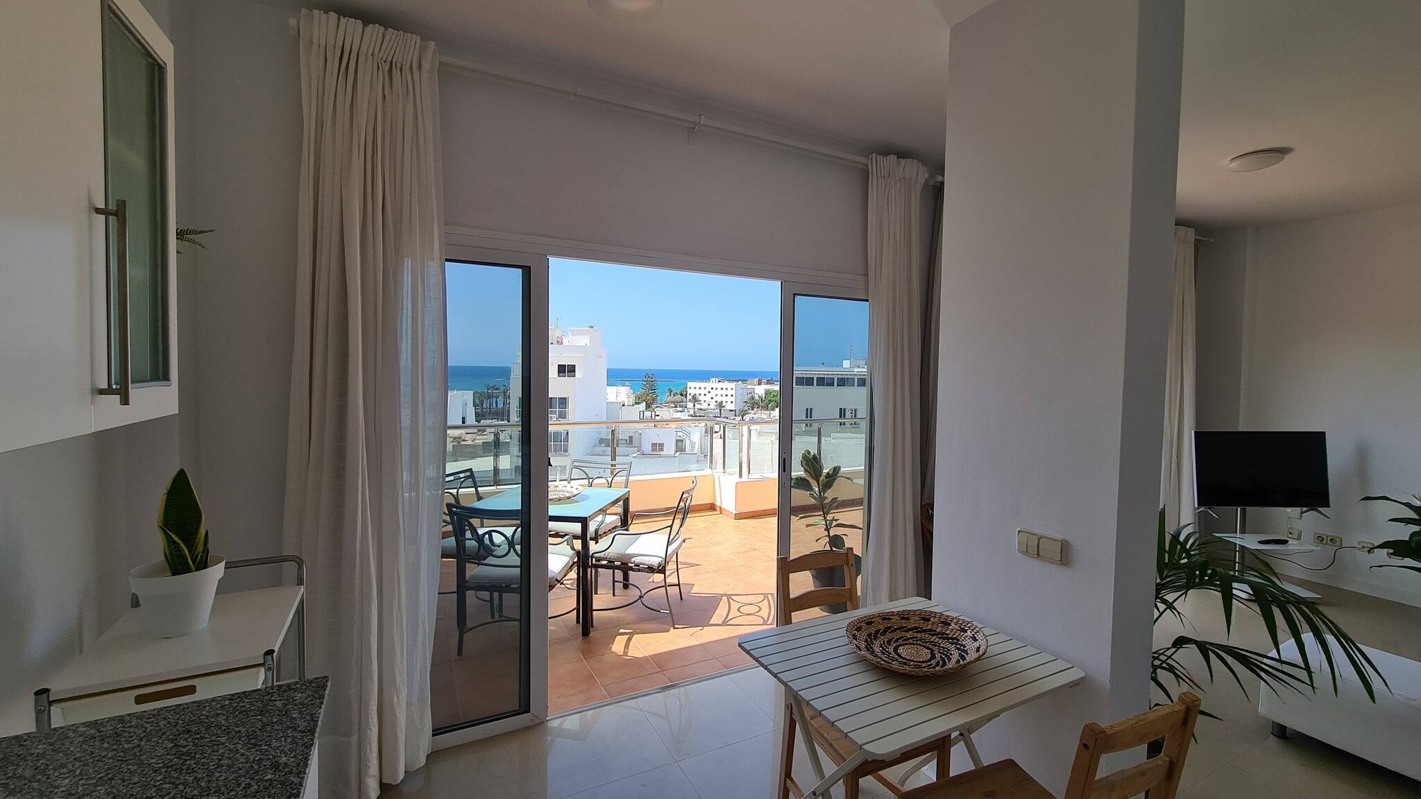 La vivienda, muy luminosa y ventilada, cuenta con un dormitorio, salón-comedor, cocina totalmente equipada, un amplio baño y esa terraza perfecta para desayunos, lecturas, cenas... Además, dispone de wifi gratuito y smart TV para tu entretenimiento. Con parking en el mismo edificio (con coste adicional), esta ubicación privilegiada también te permite explorar fácilmente toda la isla. Nosotros haremos todo lo posible para que te sientas como en casa y estaremos encantados de ayudarte en todo lo que necesites.