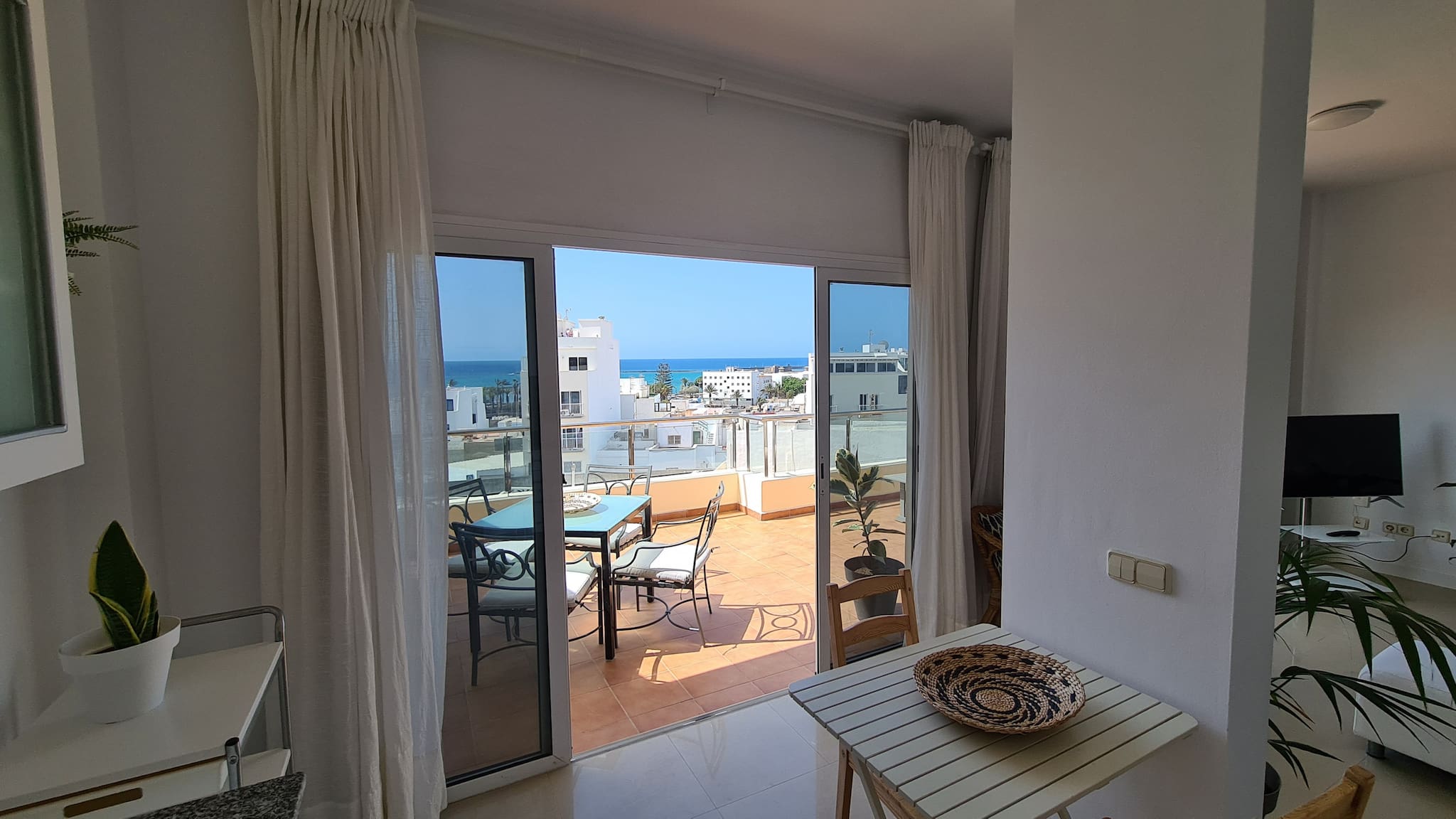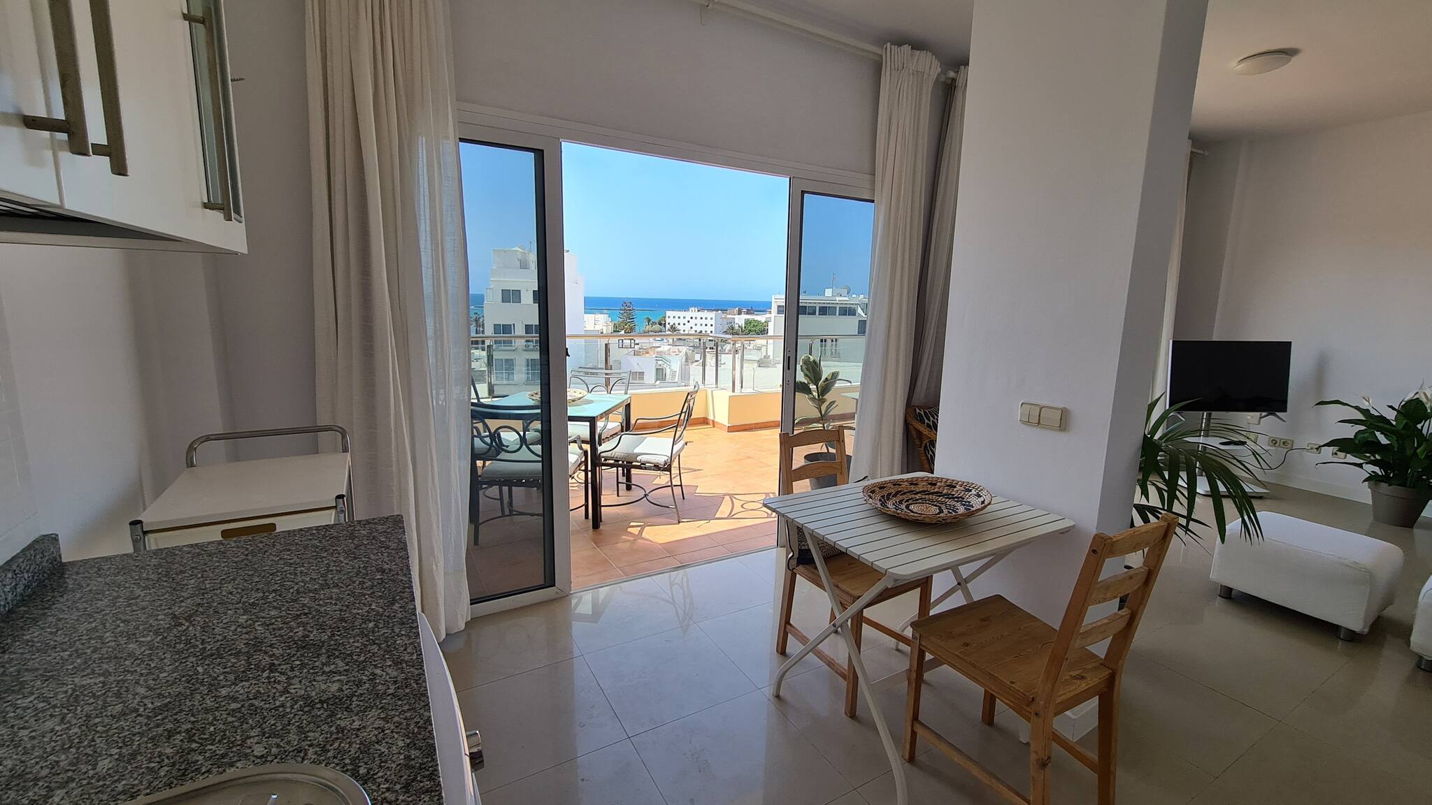 Die Wohnung, sehr hell und belüftet, verfügt über ein Schlafzimmer, Wohn-Esszimmer, voll ausgestattete Küche, ein geräumiges Badezimmer und eine perfekte Terrasse zum Frühstücken, Lesen, Abendessen... Zusätzlich bietet sie kostenloses WLAN und Smart-TV für Ihre Unterhaltung. Mit Parkplatz im selben Gebäude (gegen Aufpreis) ermöglicht Ihnen diese privilegierte Lage, die Insel problemlos zu erkunden. Wir werden alles tun, damit Sie sich wie zu Hause fühlen, und stehen Ihnen gerne bei allem zur Seite, was Sie benötigen.