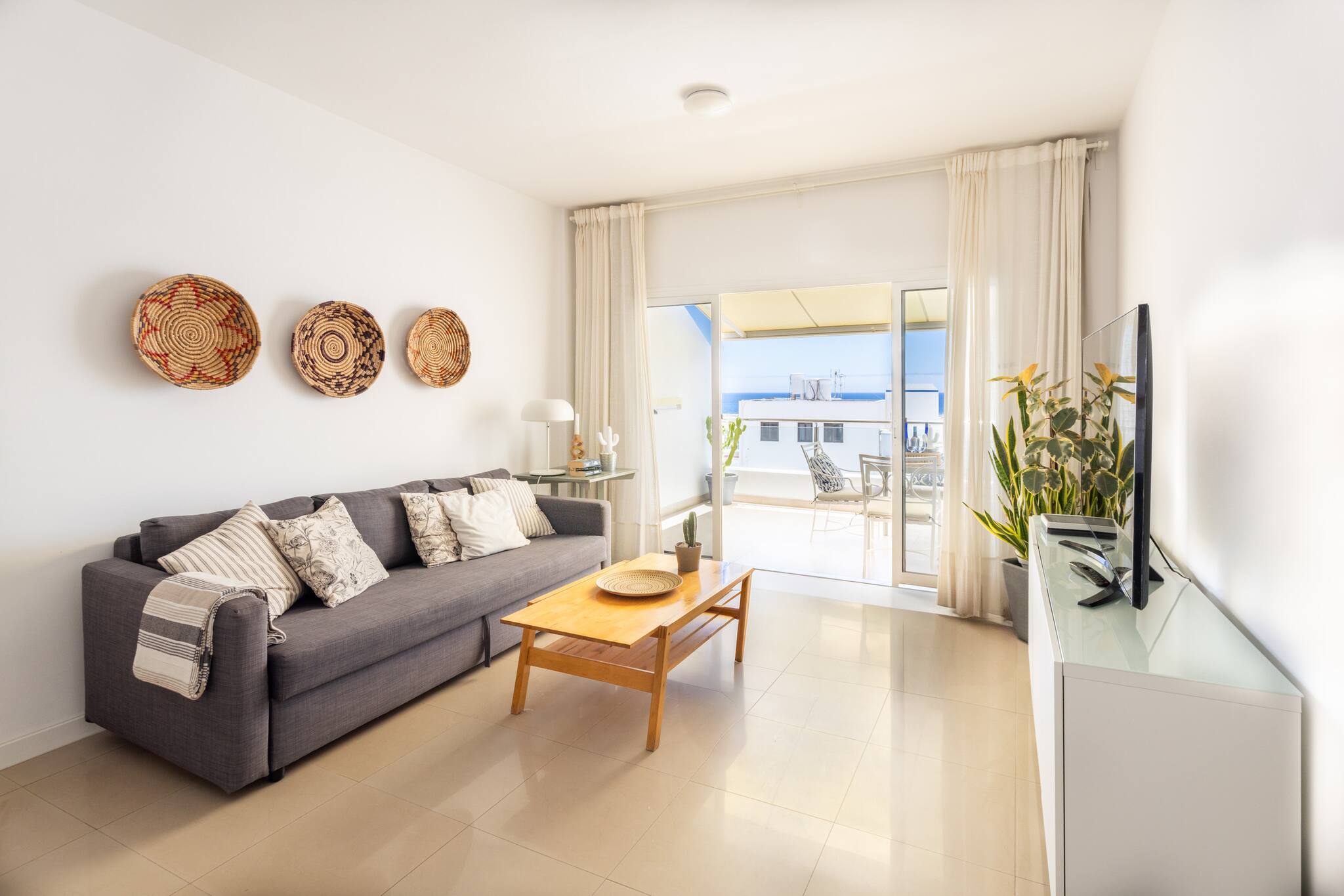 Die Wohnung, sehr hell und belüftet, verfügt über zwei Schlafzimmer (eines mit Doppelbett und ein anderes mit zwei Einzelbetten), Wohn-Esszimmer, voll ausgestattete Küche, ein geräumiges Badezimmer und eine perfekte Terrasse zum Frühstücken, Lesen, Abendessen... Zusätzlich bietet sie kostenloses WLAN und Smart-TV für Ihre Unterhaltung. Mit Parkplatz im selben Gebäude (gegen Aufpreis) ermöglicht Ihnen diese privilegierte Lage, die gesamte Insel leicht zu erkunden. Wir werden alles tun, damit Sie sich wie zu Hause fühlen, und stehen Ihnen gerne bei allem zur Seite, was Sie benötigen.